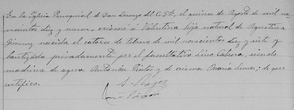 En la siguiente partida podrán observar un caso claro de la ceremonia de bautismo y de crisma en distintos momentos, incluso con distintos padrinos, ya que la criatura fue bautizada privadamente, seguramente en caso de necesidad: